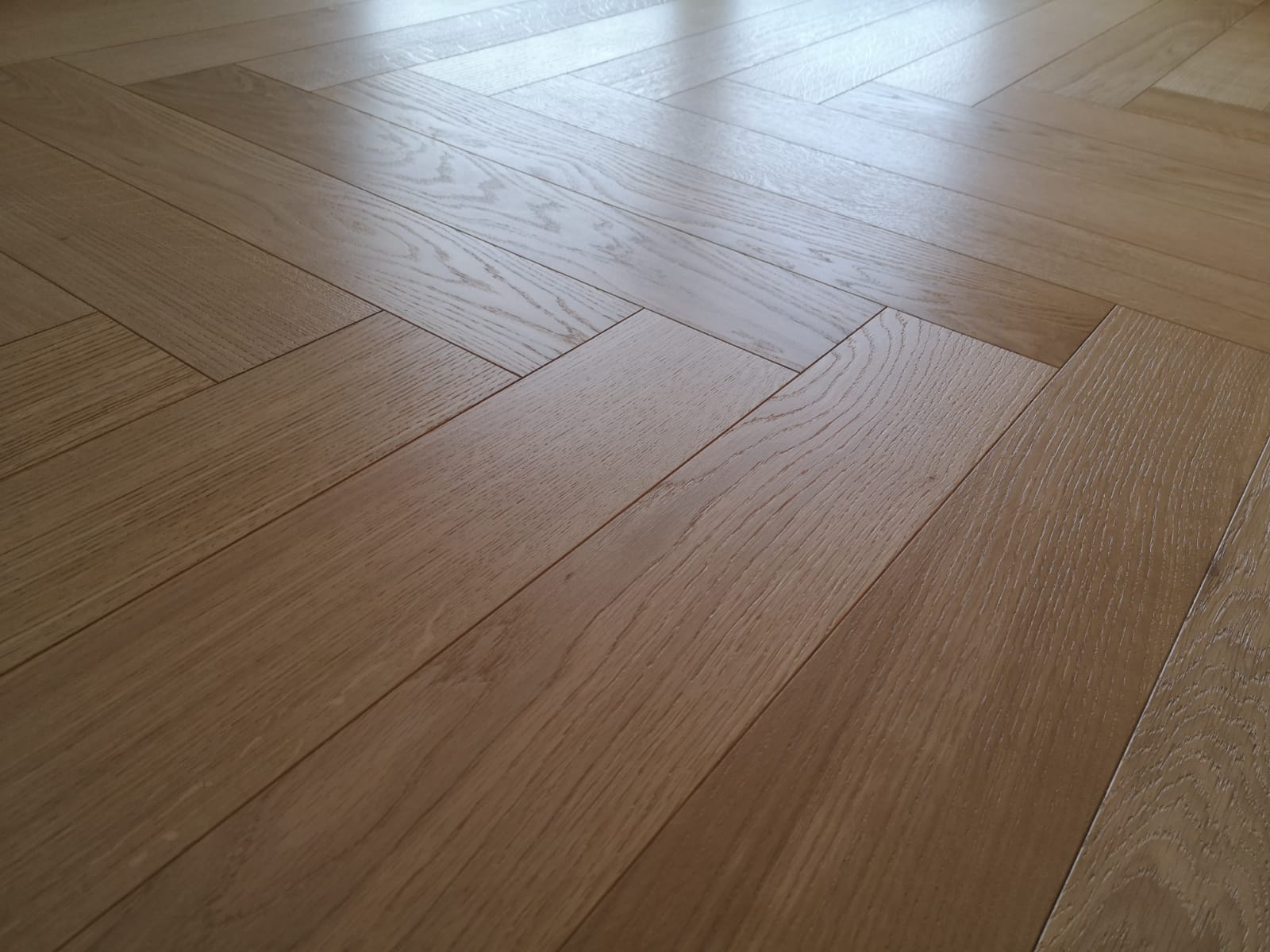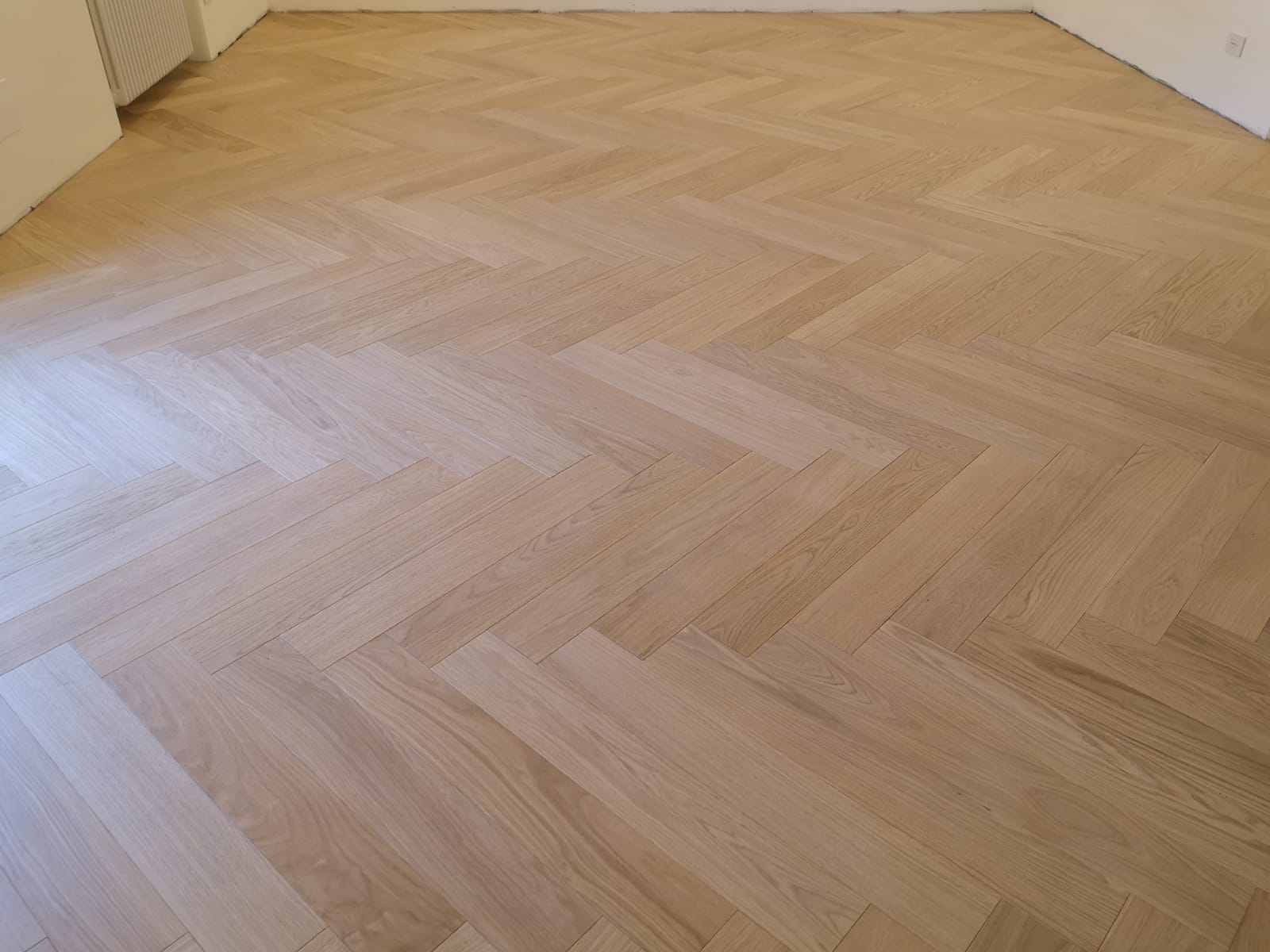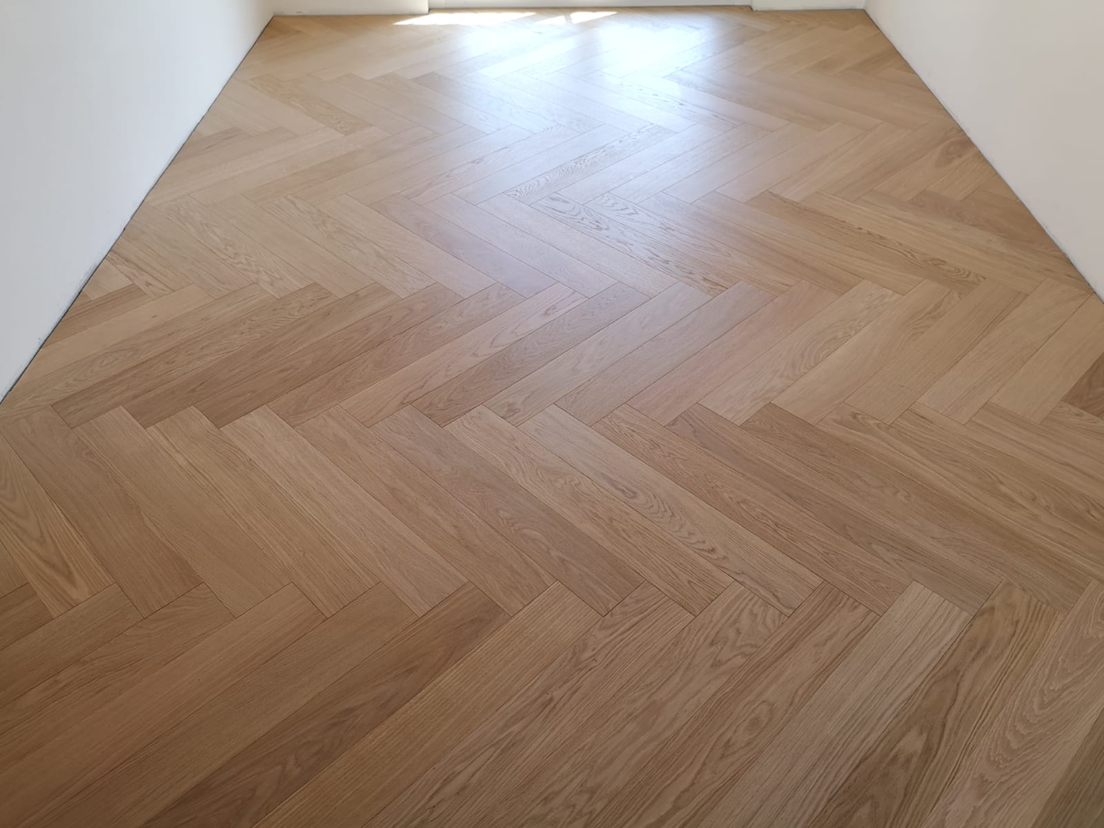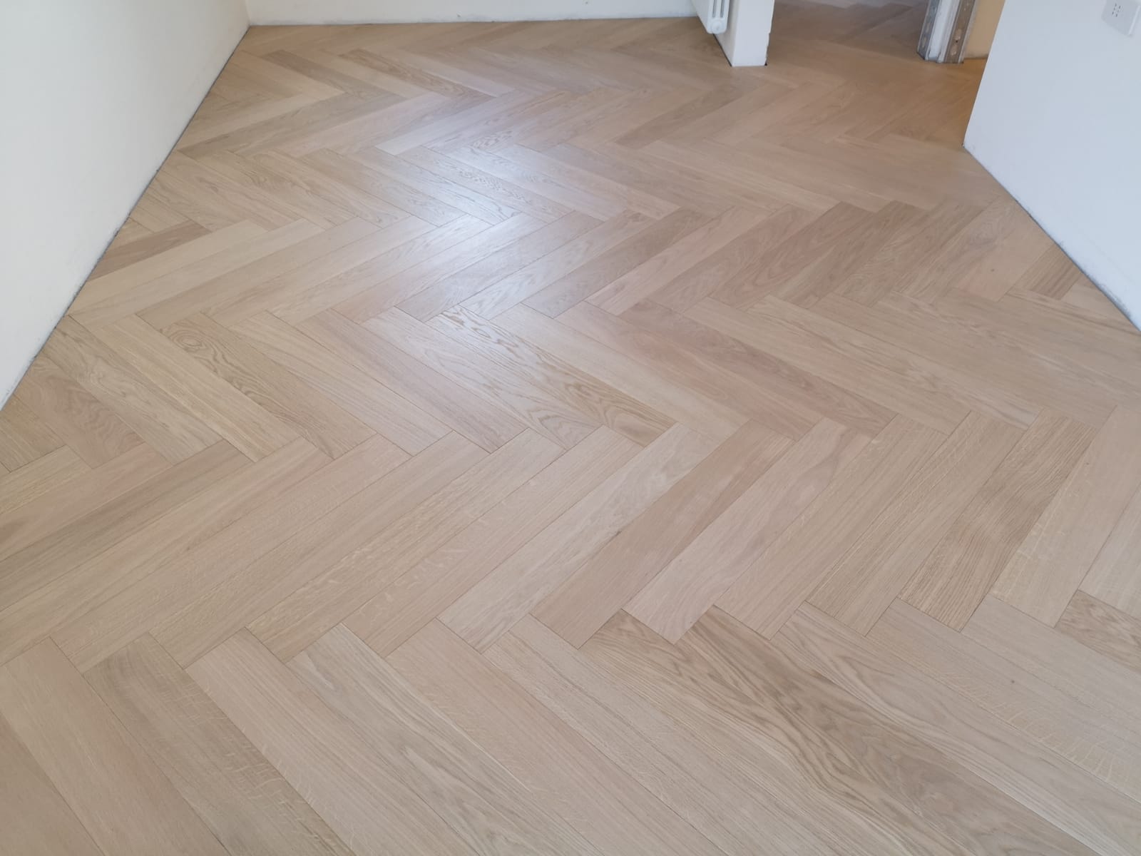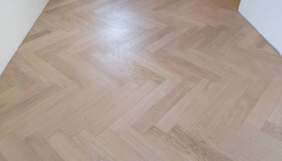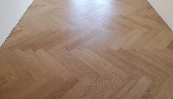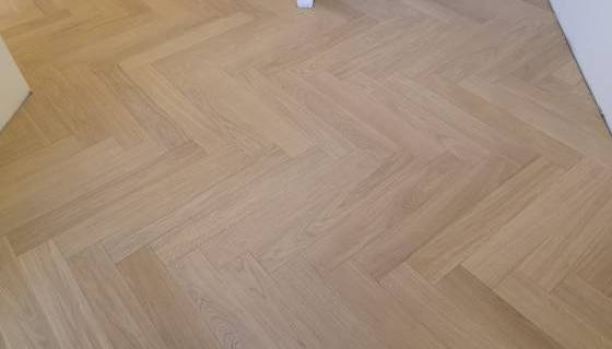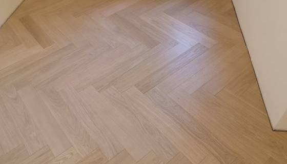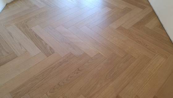 Nelle immagini di questa pagina del portale Parquettisti d'Italia mostriamo l'operato di un artigiano del parquet di nome Alessandro che opera ad Ancona e provincia e si è dedicato al montaggio di un parquet in legno prefinito ma che si poteva fare anche con legno massello grezzo di rovere in formato a spina italiana con listoncini rettangolari montati a pavimento a 90° con file contrapposte a formare un disegno geometrico regolare e molto elegante. Le operazioni di prefinitura avrebbero poi visto l'uso di macchinari per la pulitura e levigatura della superficie prima di procedere con la finitura di tre mani di vernice ad effetto semi opaco dal colore naturale.