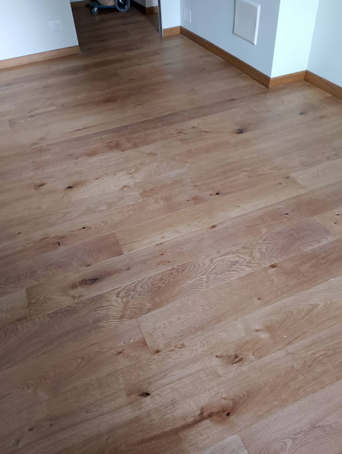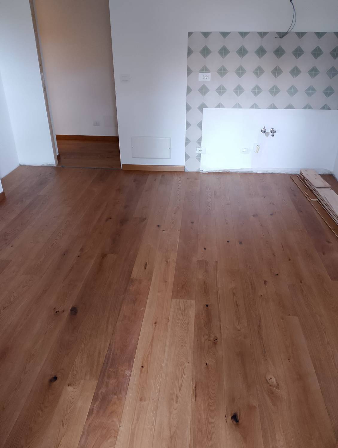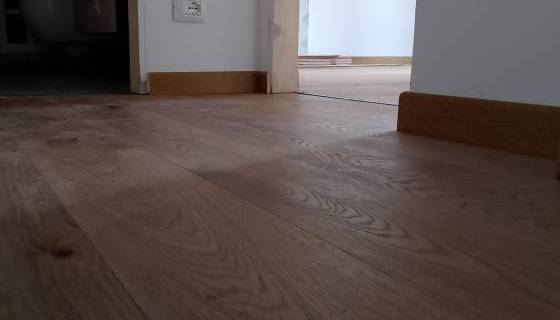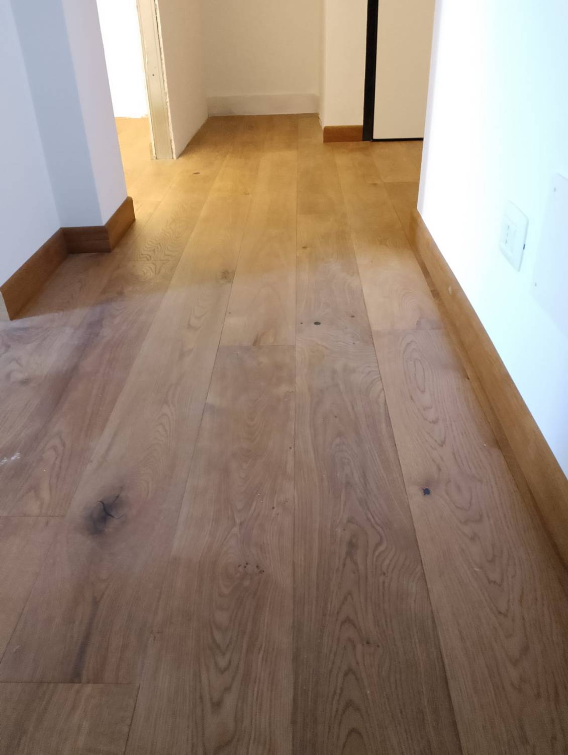 Incontrerai così specialisti del parquet come Stefano, che ci ha inviato queste immagini: rappresentano la posa di un parquet in legno di rovere da quercia tinto color noce scuro, con una spazzolatura marcata per dare una texture materica alla superficie del pavimento in legno. La selezione rustica dona calore all'ambiente e lo zoccolino, o battiscopa, posato in tinta con il pavimento completa una posa in opera di questo parquet eseguita secondo tutte le migliori regole del buon costruire. Stefano e i suoi colleghi ti aspettano: registrati come utente in pochi secondi e cercali.