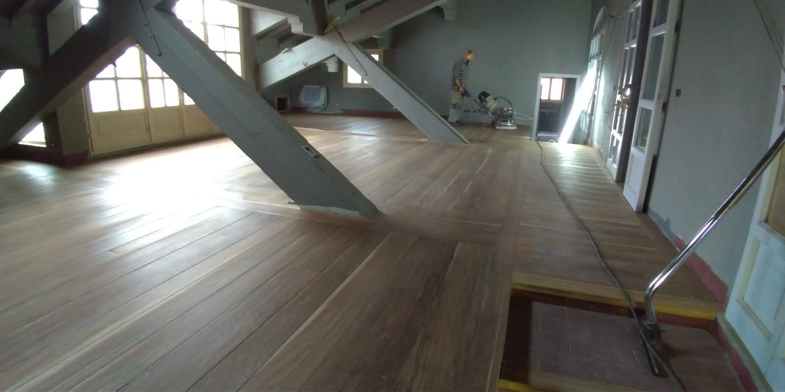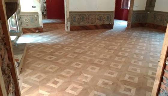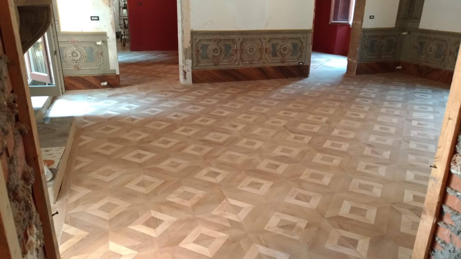 Abbiamo pubblicato una serie di foto che ritraggono Alessandro, un parquettista specializzato che opera su Bologna e provincia. Nelle immagini si ammira la complessità di un lavoro in una residenza d'epoca il cui pavimento a mosaico costituito da quadrotte a loro volte composte da singoli elementi di legno in varie essenze montati a formare un disegno geometrico ripetitivo. Nelle foto si può ammirare la precisione artigianale di un esperto artigiano del legno che dopo aver levigato e asportato la parte superficiale di legno rovinato e sverniciato, si appresta a stendere la prima di varie mani di vernice di protezione per riportare al suo iniziale splendore un parquet di lusso. Le altre due immagini ritraggono un sottotetto con pavimento in doghe di grandi dimensioni realizzate con legno antico finito con trattamento naturale per un parquet di grande impatto visivo capace di trasmettere calore.