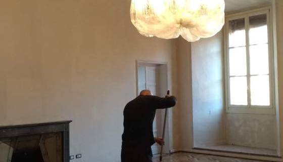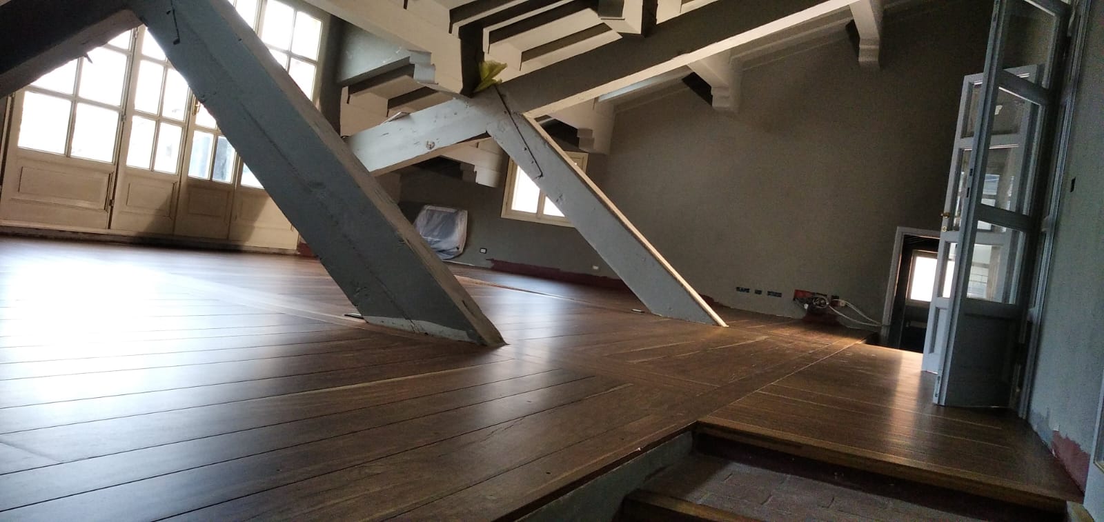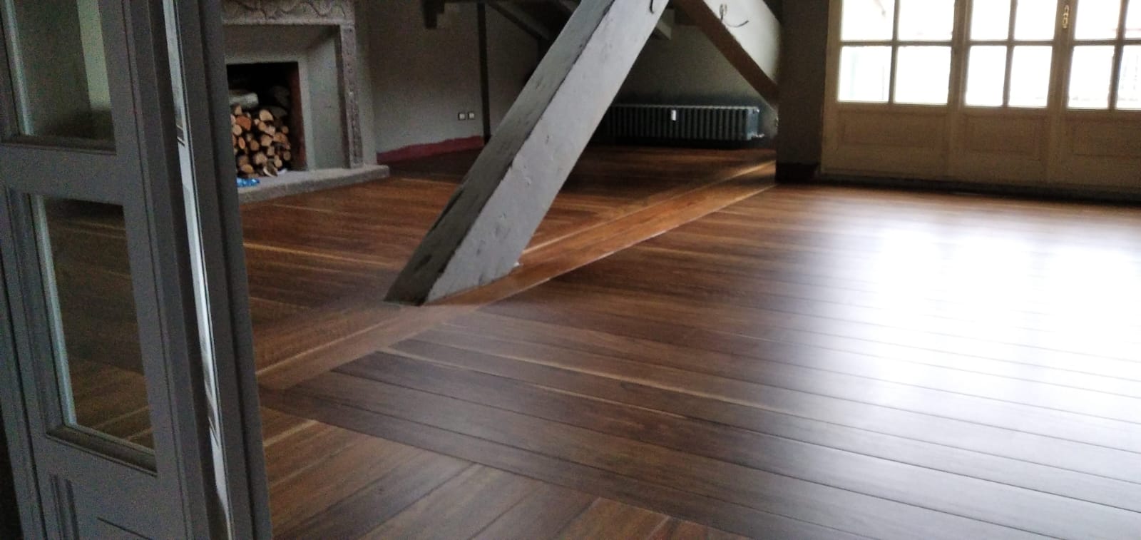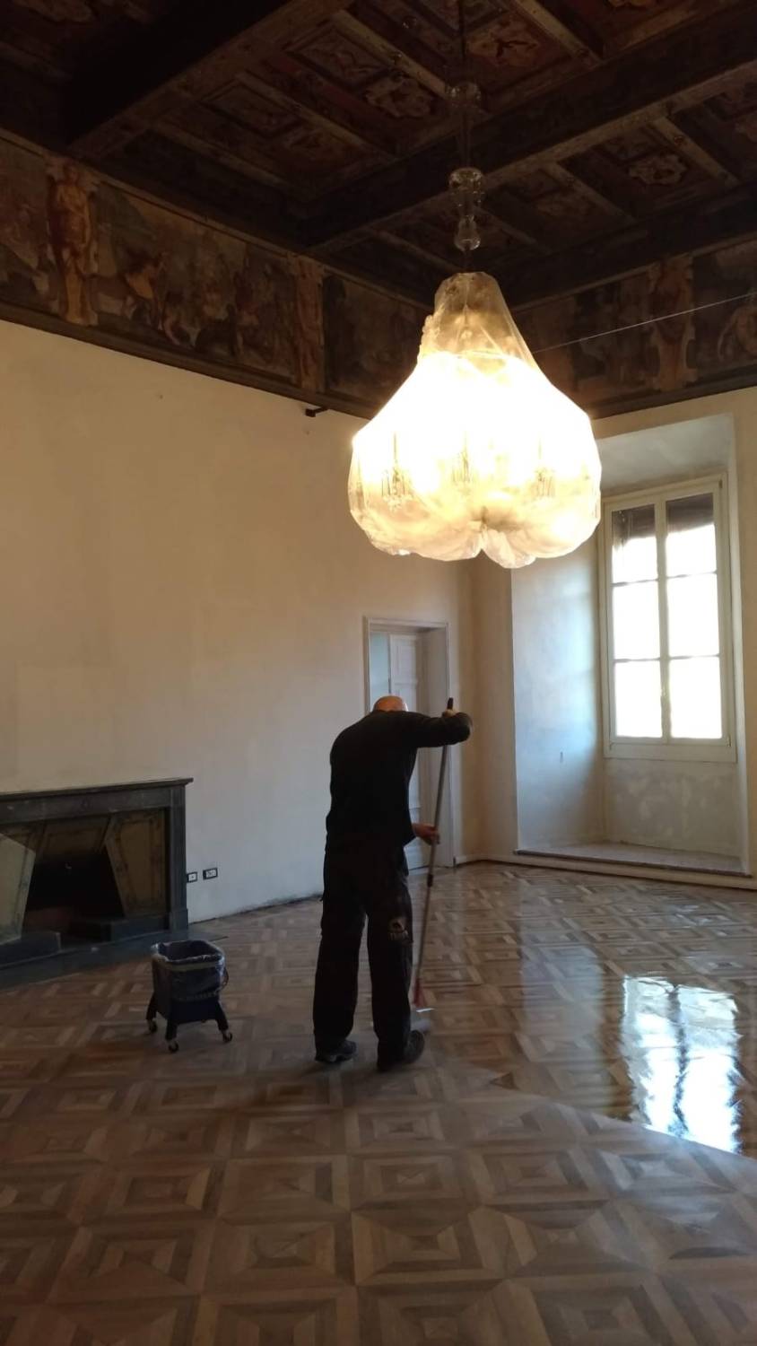 Abbiamo pubblicato una serie di foto che ritraggono Alessandro, un parquettista specializzato che opera su Bologna e provincia. Nelle immagini si ammira la complessità di un lavoro in una residenza d'epoca il cui pavimento a mosaico costituito da quadrotte a loro volte composte da singoli elementi di legno in varie essenze montati a formare un disegno geometrico ripetitivo. Nelle foto si può ammirare la precisione artigianale di un esperto artigiano del legno che dopo aver levigato e asportato la parte superficiale di legno rovinato e sverniciato, si appresta a stendere la prima di varie mani di vernice di protezione per riportare al suo iniziale splendore un parquet di lusso. Le altre due immagini ritraggono un sottotetto con pavimento in doghe di grandi dimensioni realizzate con legno antico finito con trattamento naturale per un parquet di grande impatto visivo capace di trasmettere calore.