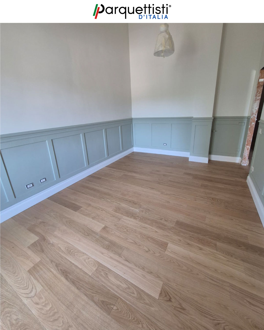 - Integrazione con Boiserie: Competenze specialistiche nell'armonizzare il parquet con boiserie decorative ricercate per ambienti dal carattere elegante e moderno.