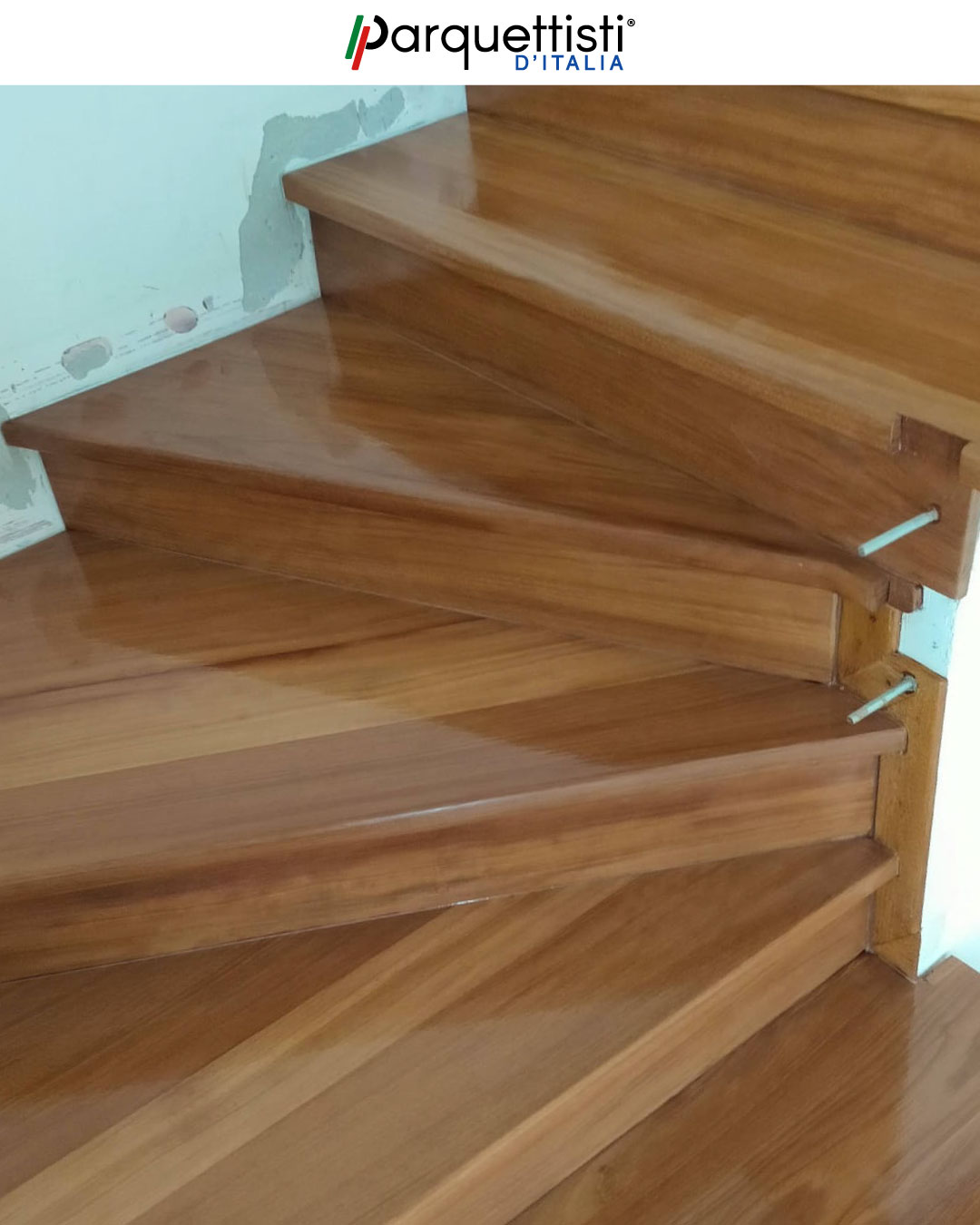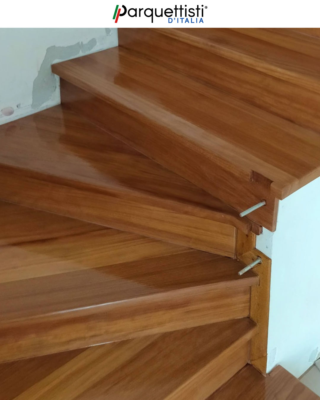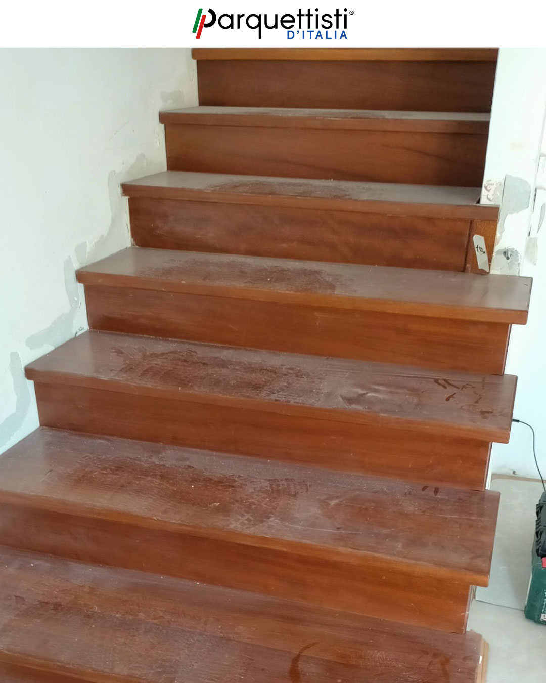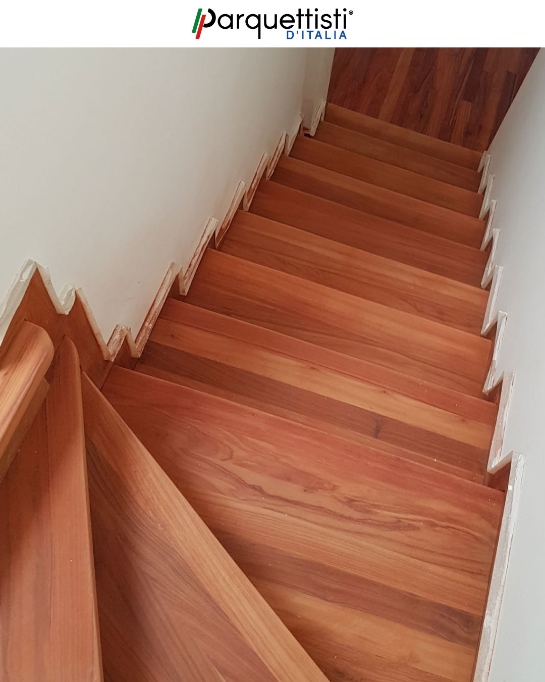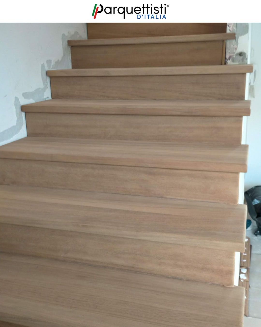L’esperienza di Valerio emerge chiaramente durante queste fasi di smontaggio di una vecchia scala con una nuova copertura in legno. Attraverso un attento lavoro di rimozione e successiva ricostruzione, una struttura ormai datata è stata trasformata in un elemento d'arredo moderno. Questo lavoro dimostra come la perizia artigianale possa infondere nuova vita e calore agli ambienti domestici.