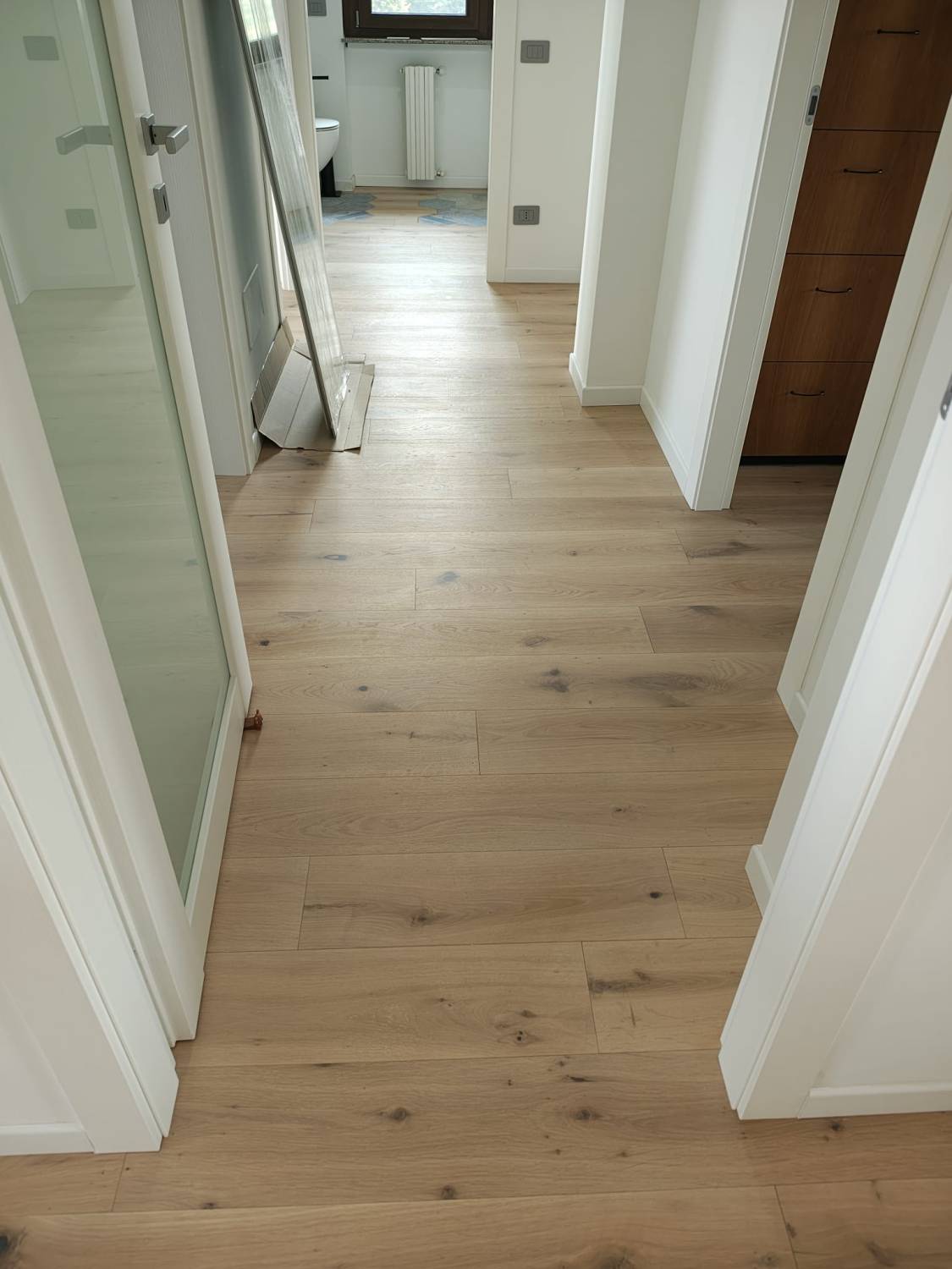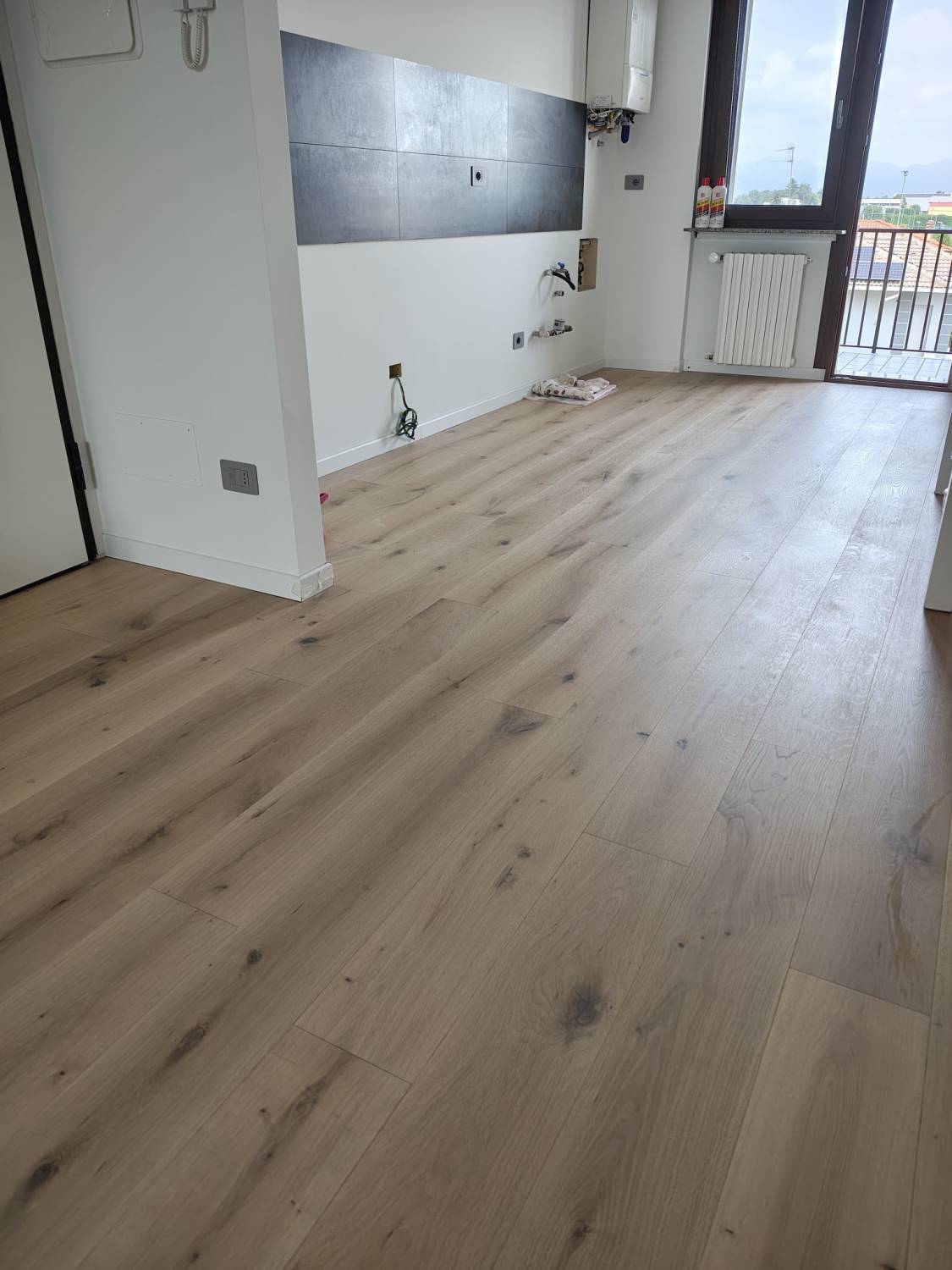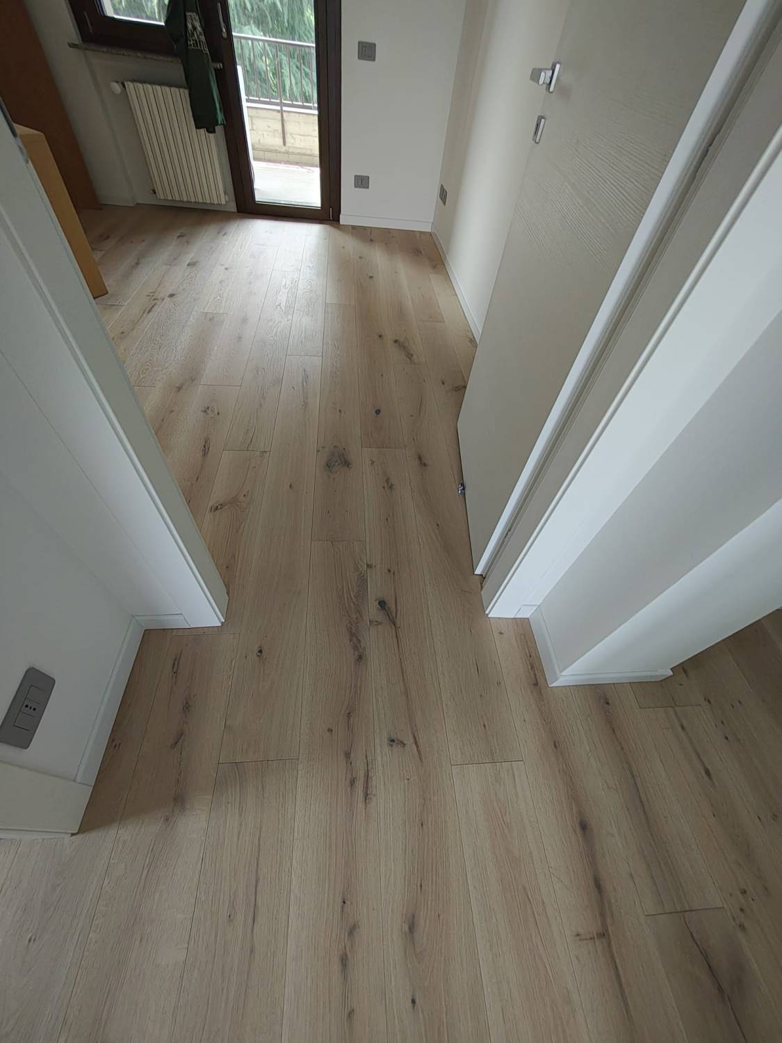 Tornando alle immagini di questi lavori di pavimenti in legno troverete anche la posa di doghe in rovere e legno e posa a spina e riquadri con le così dette "fasce a bindello perimetriali", tipiche delle case classiche di inizio secolo scorso.
