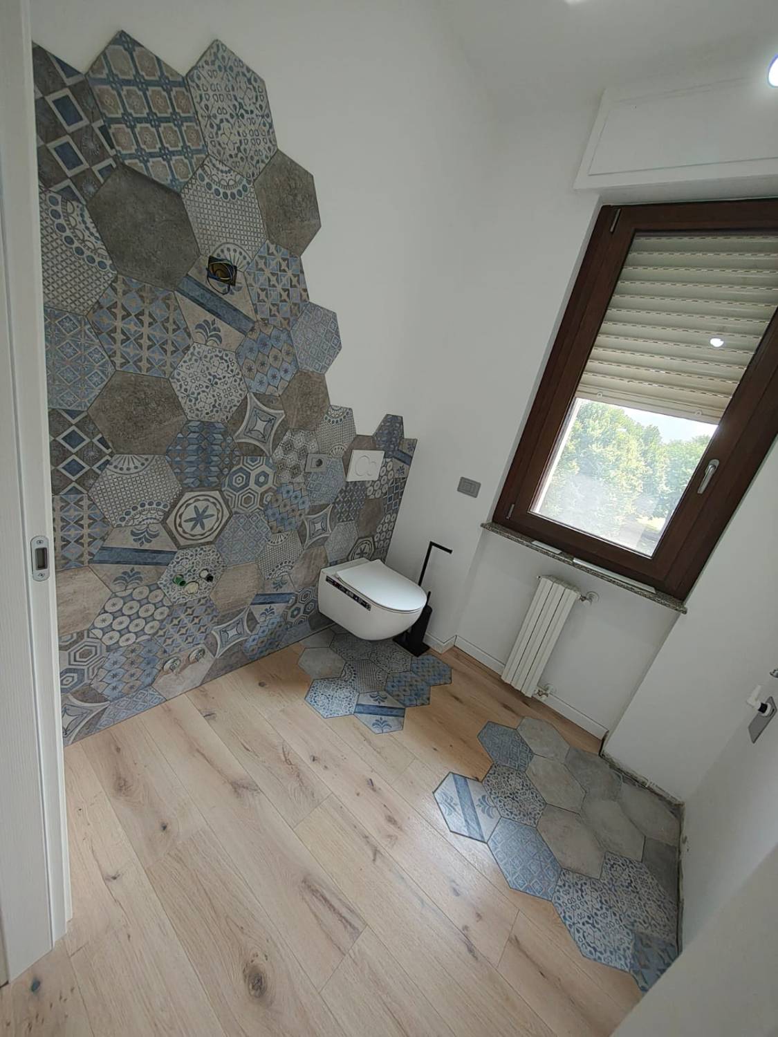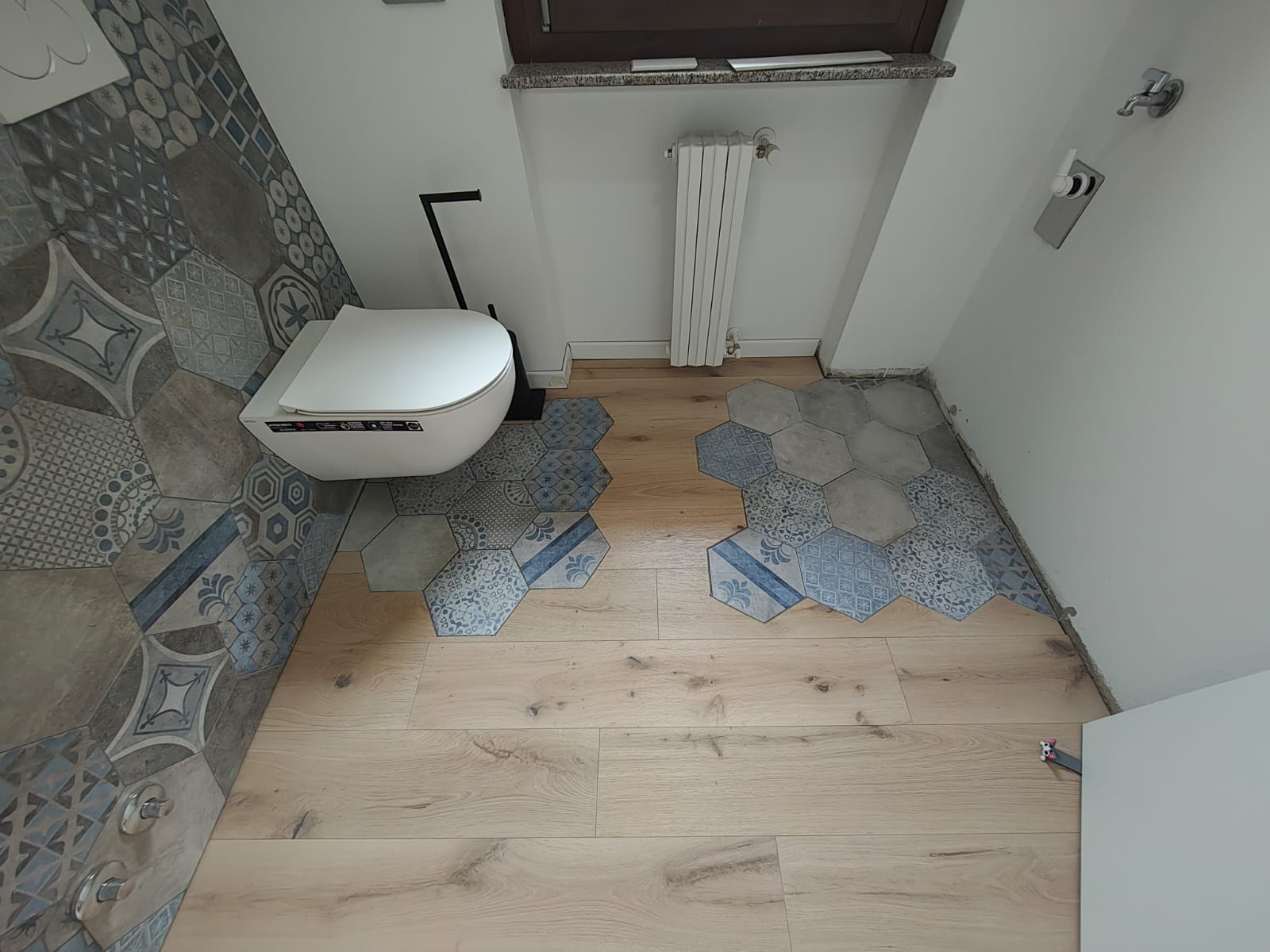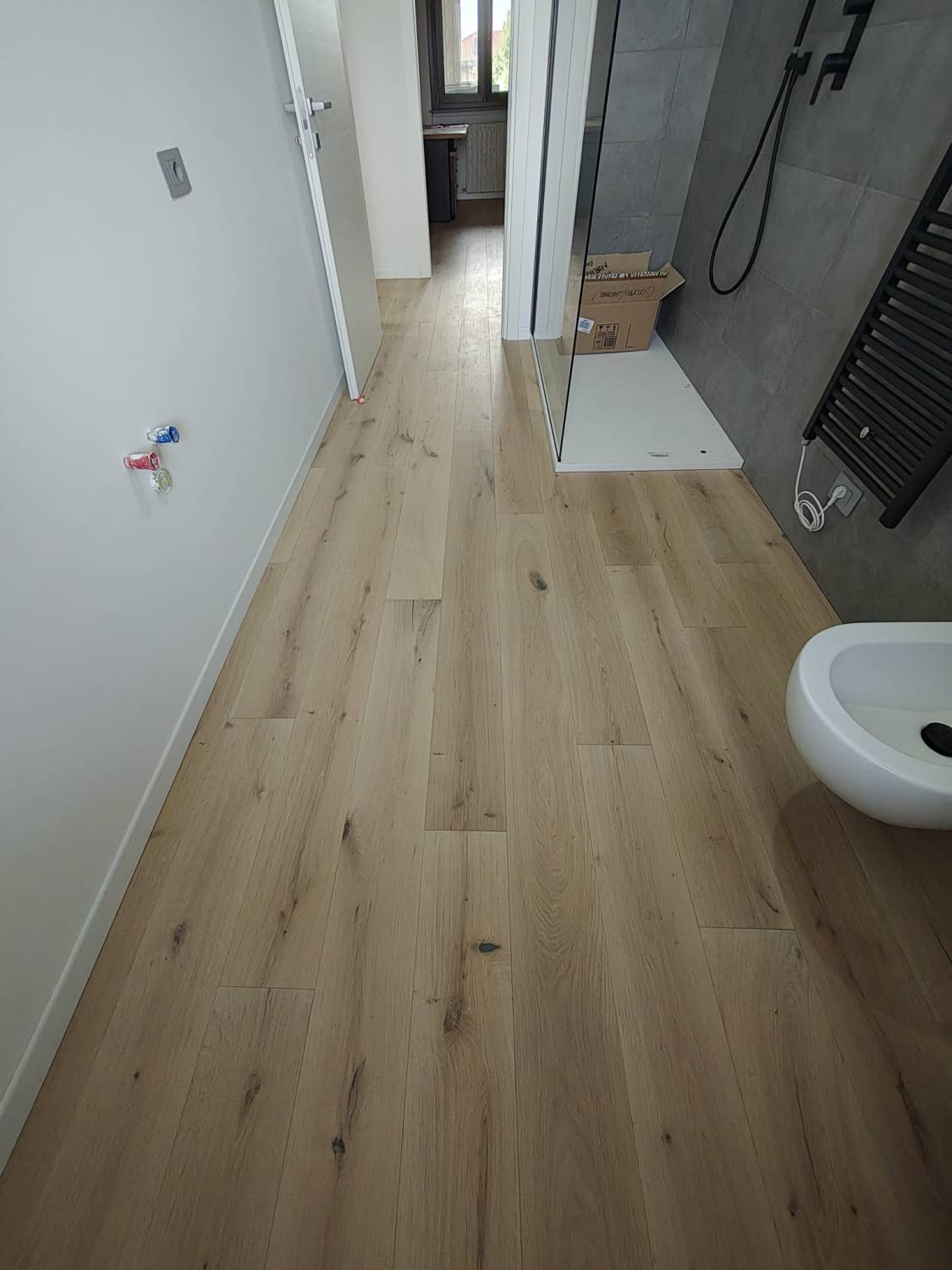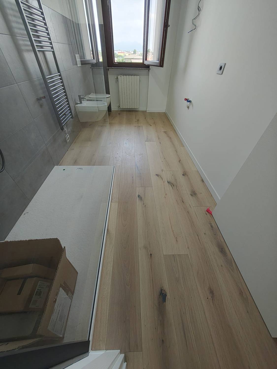 Tornando alle immagini di questi lavori di pavimenti in legno troverete anche la posa di doghe in rovere e legno e posa a spina e riquadri con le così dette "fasce a bindello perimetriali", tipiche delle case classiche di inizio secolo scorso.