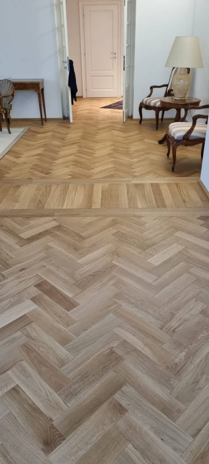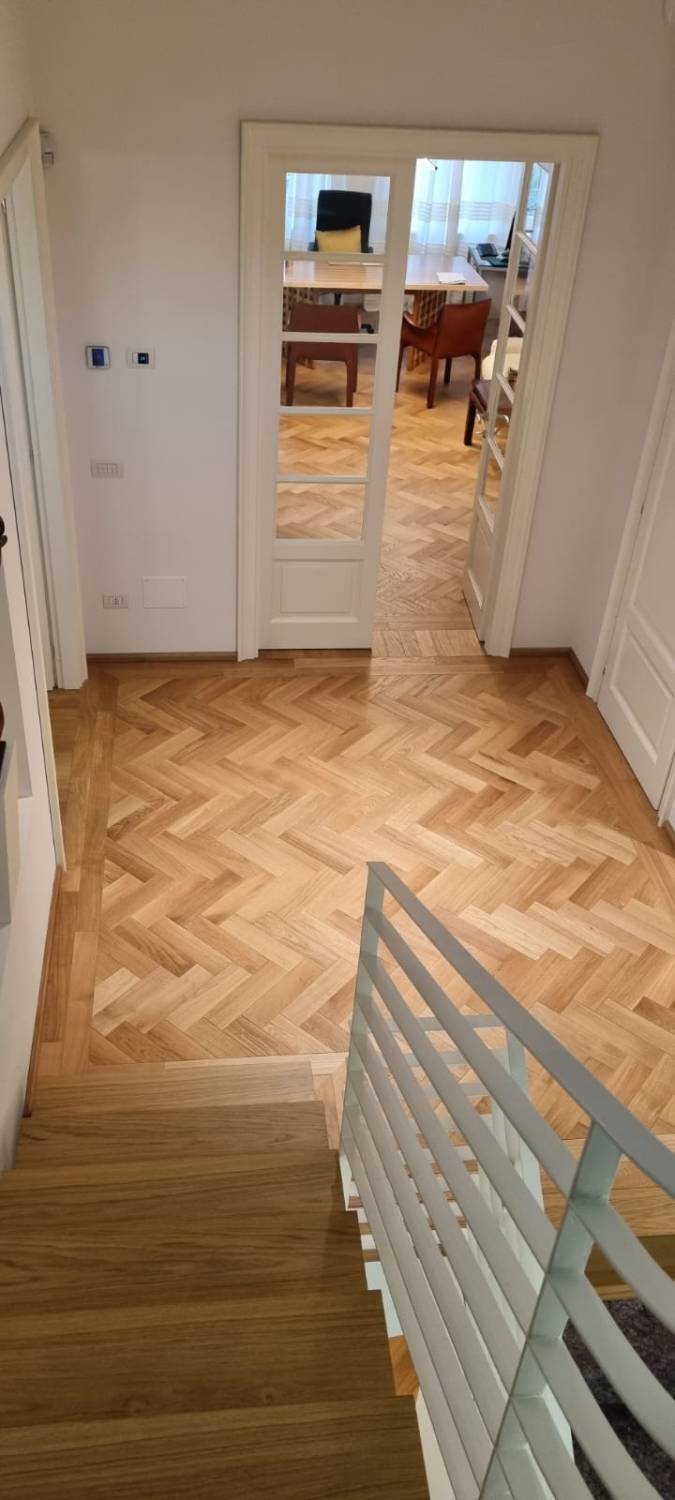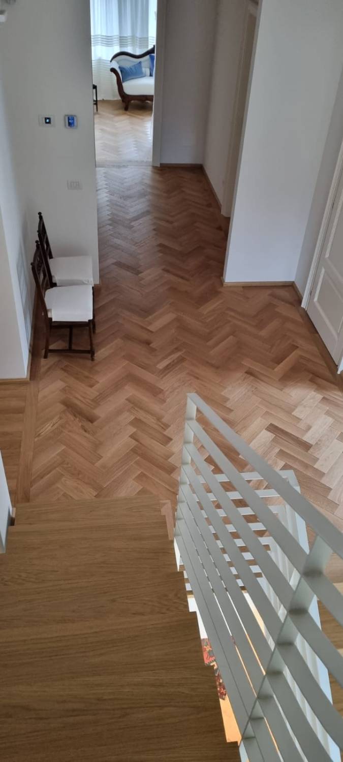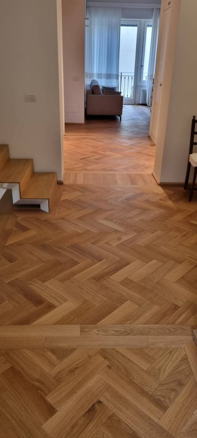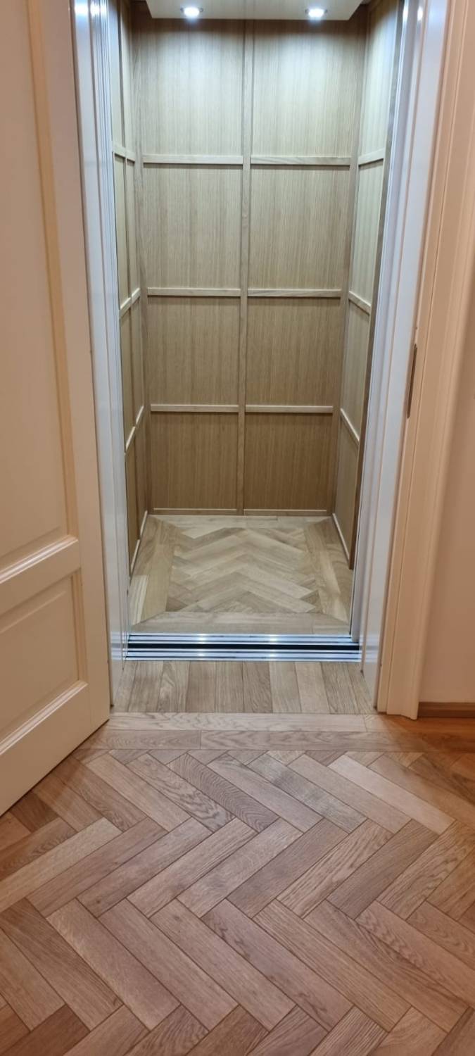 Quando si pensa ad un pavimento in legno di qualità la spina italiana di rovere interpreta perfettamente l'ideale di eleganza e qualità. Soprattutto se come nel caso delle foto che trovate in questa pagina si tratta di un parquet in prima scelta senza nodi. Come vedete Giuseppe che è il nostro artigiano del parquet di riferimento nella provincia di Pavia in Lombardia, ha montato le doghe di legno anche nella pavimentazione dell'ascensore per coerenza con il resto della casa, quasi fosse una estensione senza soluzione di continuità del resto dell'ambiente domestico.