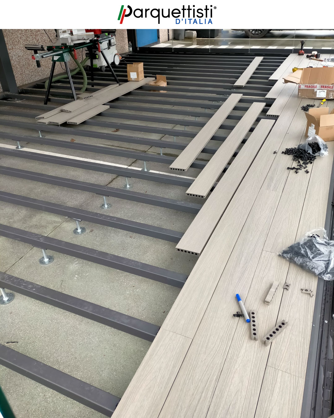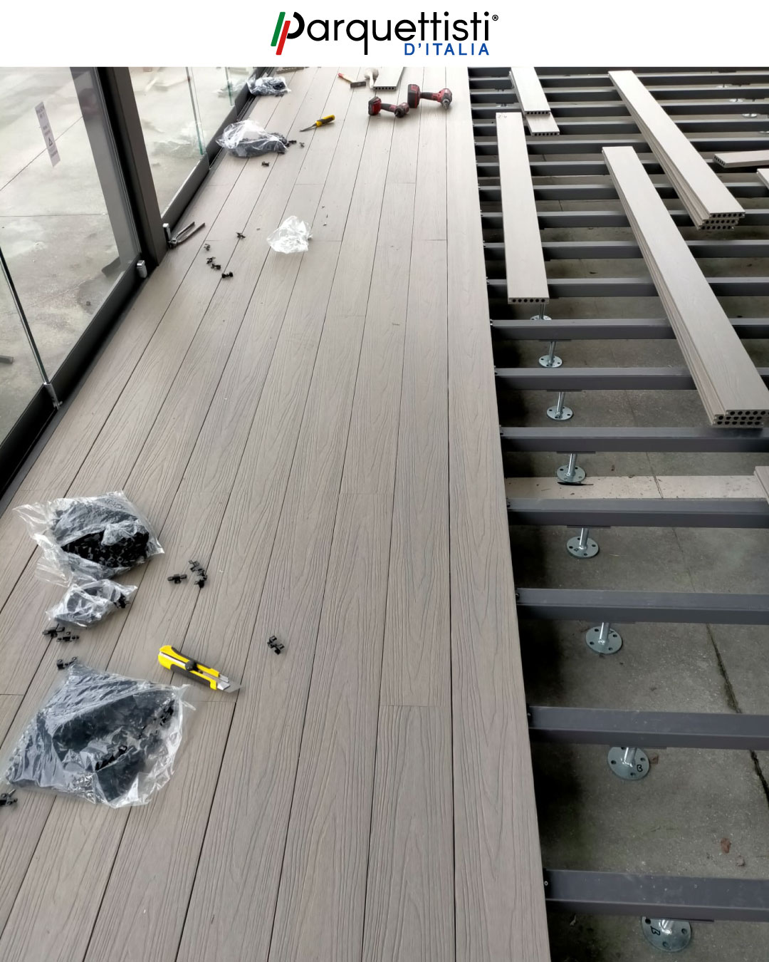 Montaggio pedana decking da esterno in WPC effetto legno