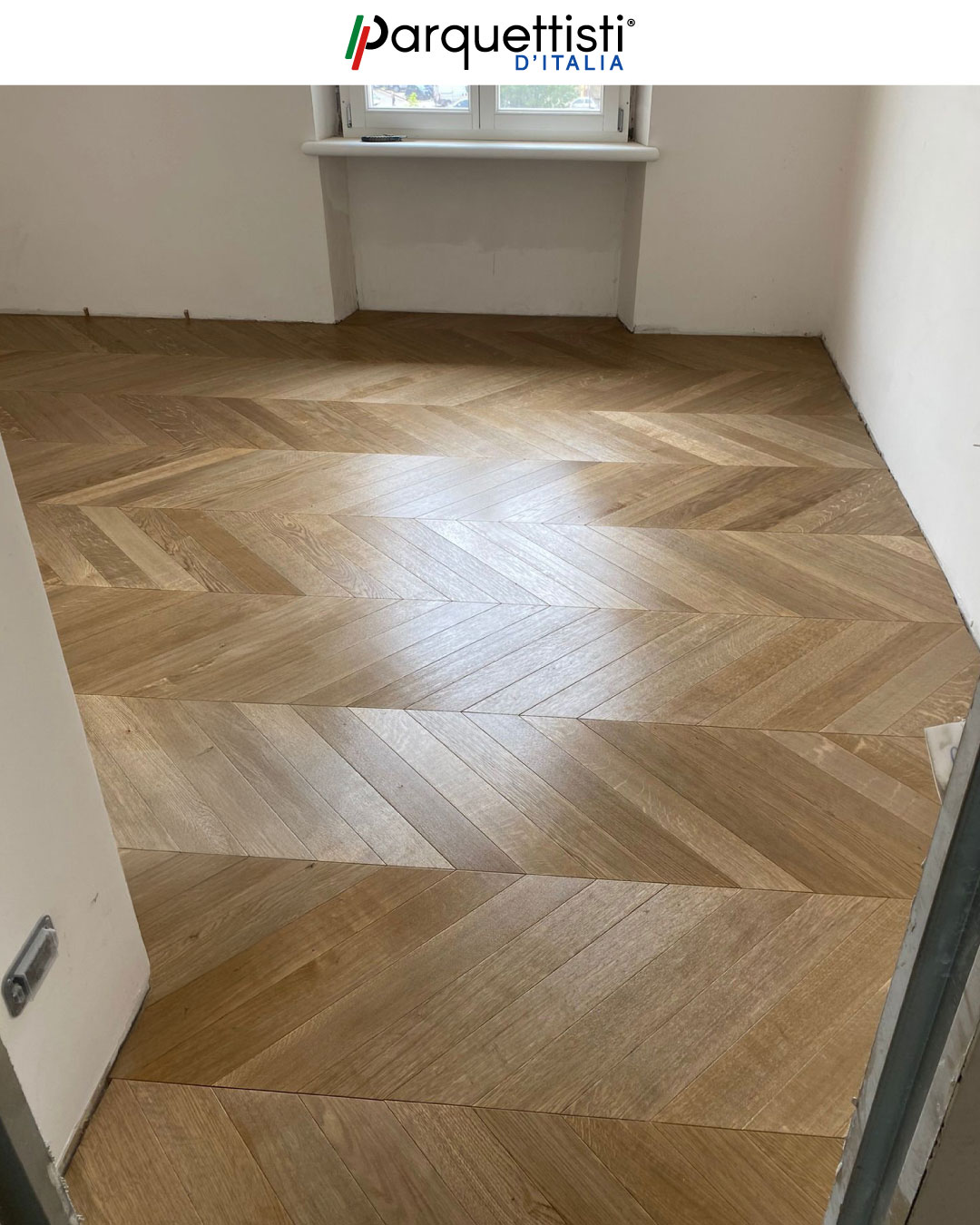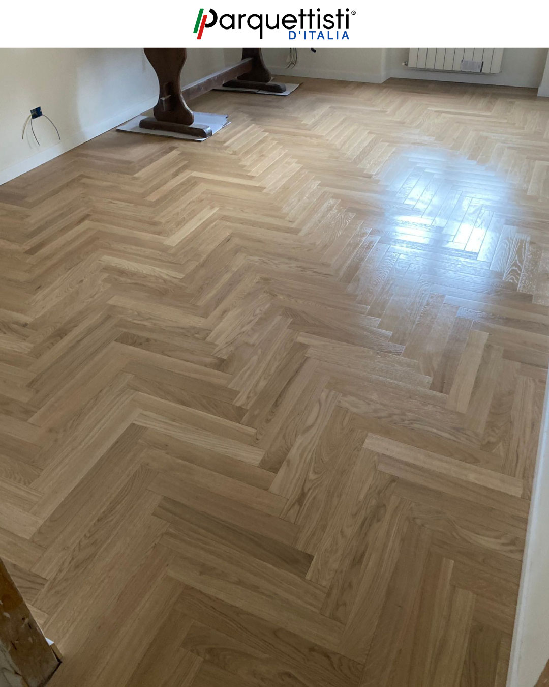 - Posa tecnica di spina francese in rovere di prima scelta con tagli millimetrici;