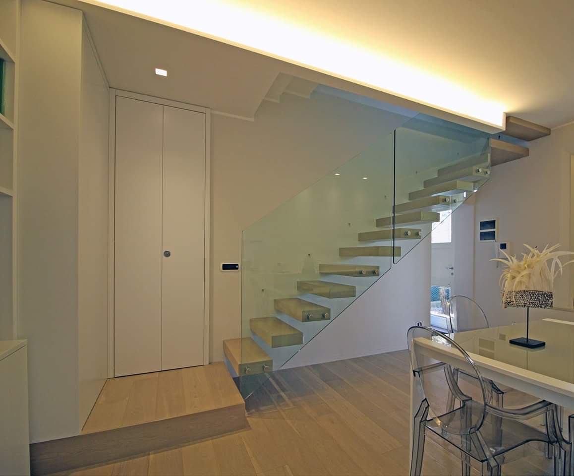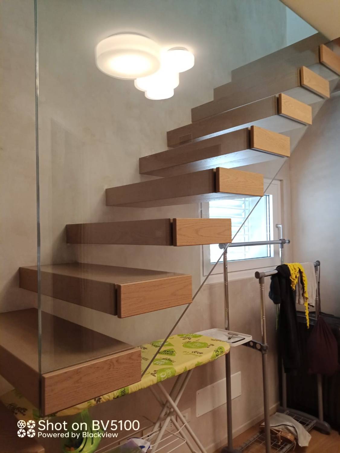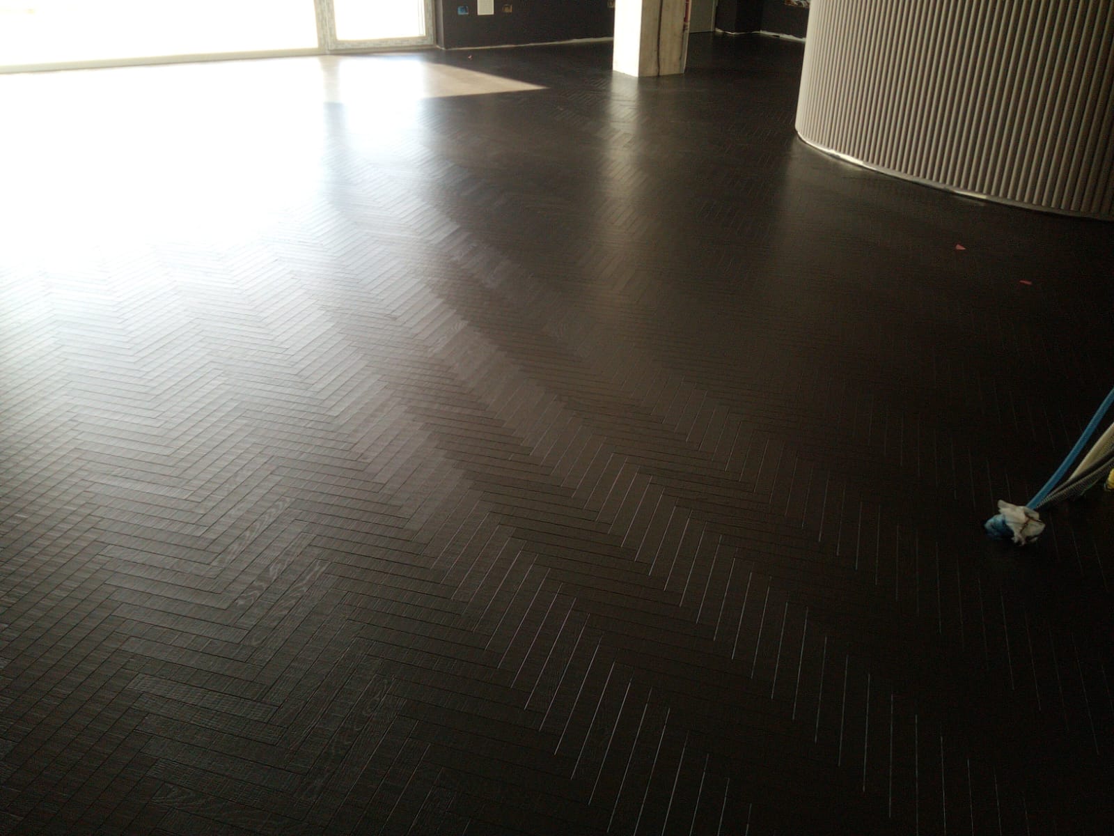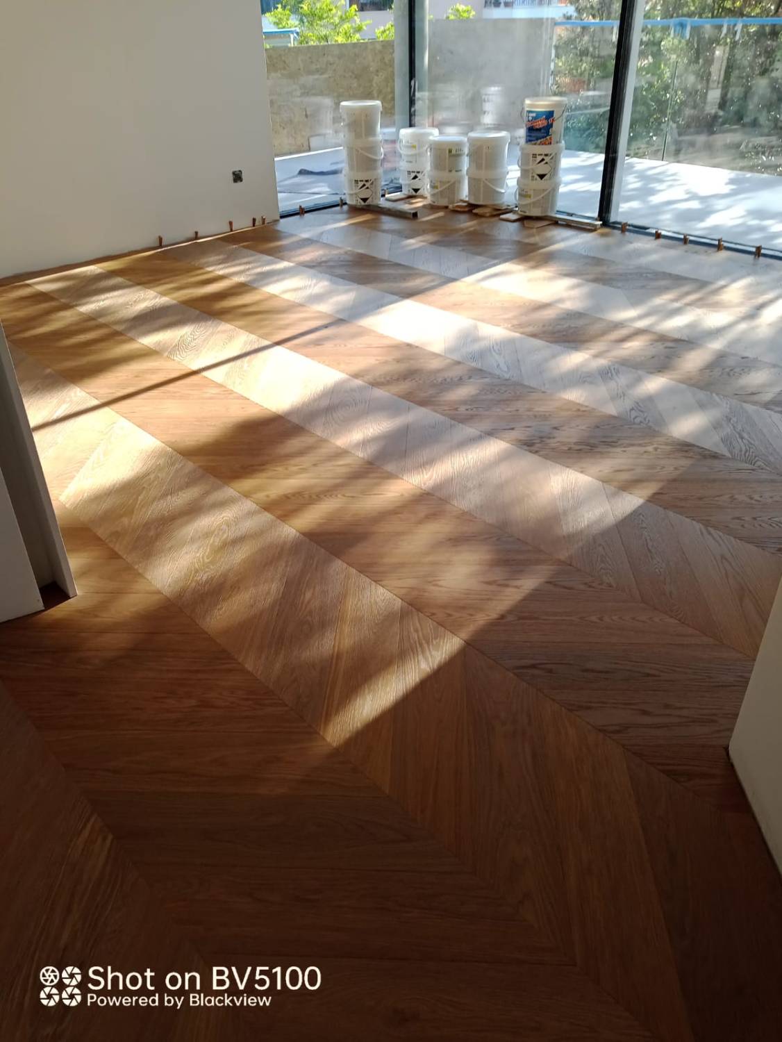 Come si può qualificare un artigiano del parquet attraverso i propri lavori? Queste immagini parlano chiaro: Massimiliano è un artigiano che opera nel mondo dei parquet e dei pavimenti in legno, ma anche nel montaggio di rivestimenti in legno da parete, che con l'apporto di queste fotografie ci comunica tutta l'abilità necessaria nelle finiture di certe pose speciali. In particolare invitiamo a soffermarvi sulla precisione di tagli e incollaggi su misura di parquet prefinito in rovere intorno alle placchette delle prese di corrente e degli interruttori della luce, senza perdere la continuità della posa di pavimento e pareti in legno, ma anche la perfetta compattezza e accoppiamento della doghe in formato spina francese a 45° in rovere. Cosa dire poi del parquet a mosaico in vero legno posato con tecnica incollata con tanti rombi in rovere che compongono esagoni regolari? Una meraviglia.