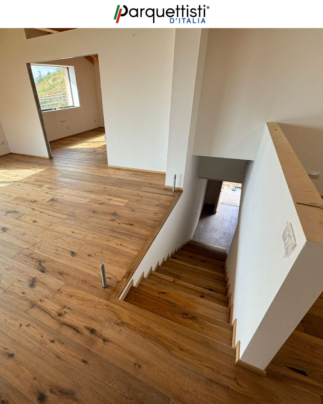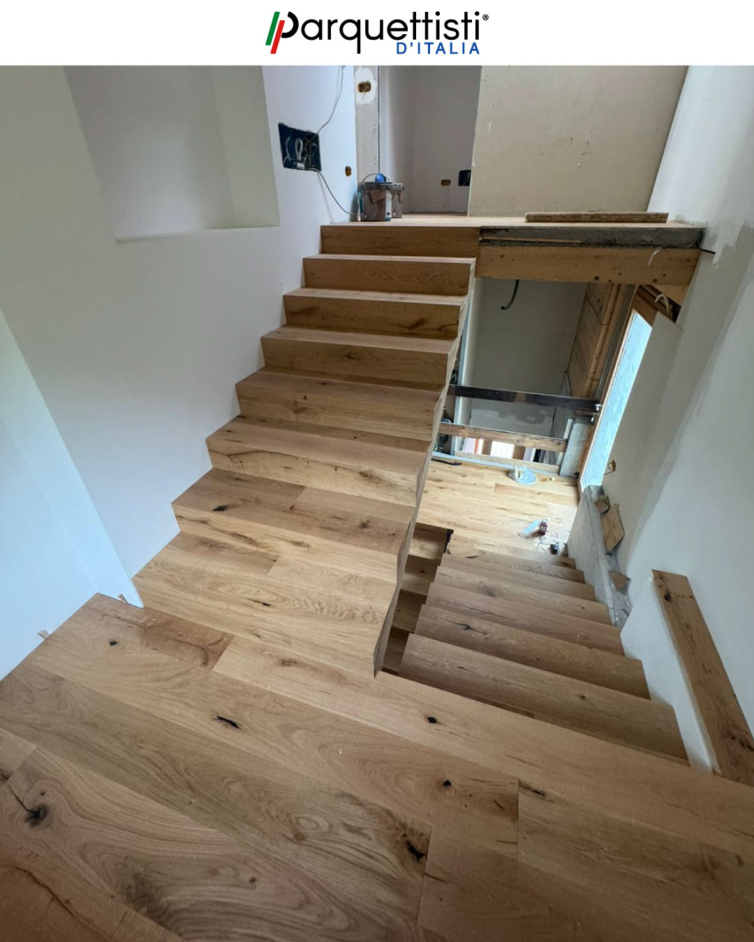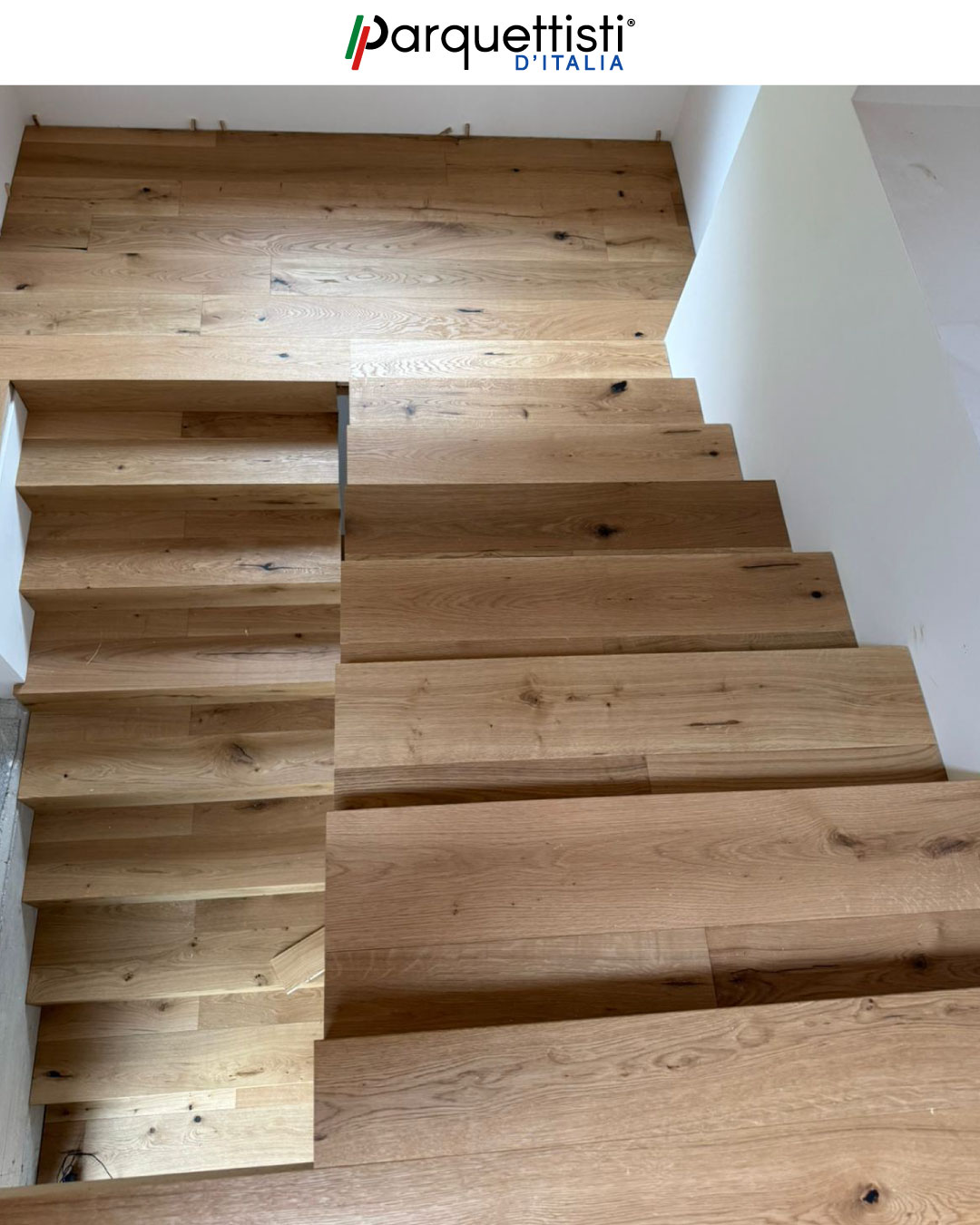 - Progettazione e realizzazione di scale su misura coordinate con il rivestimento in parquet dell'abitazione;